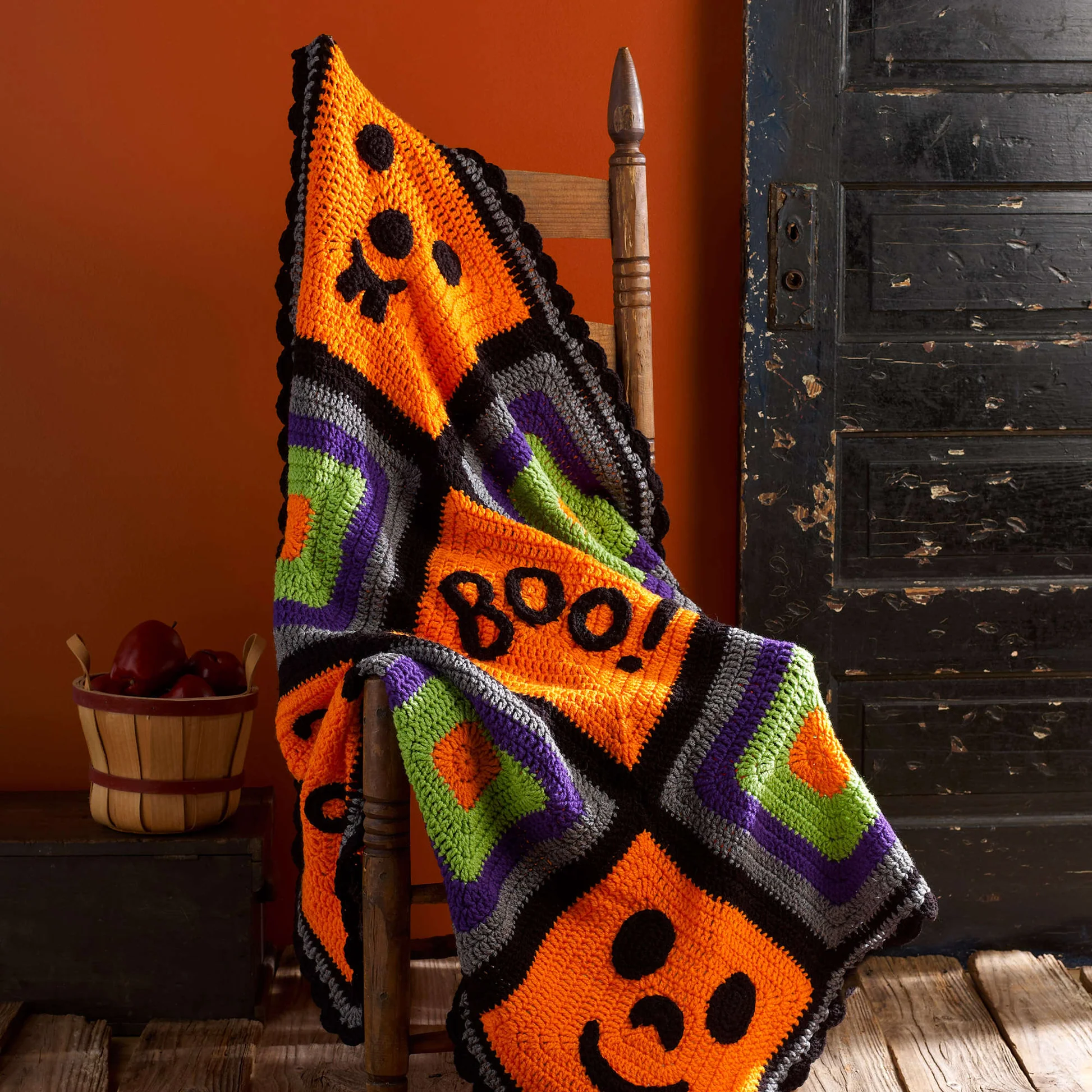 11. Pumpkin Face Throw Blanket – Yarnspirations