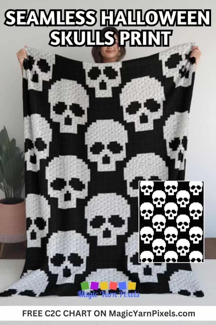 21. Skulls Blanket (C2C) – Magic Yarn Pixels