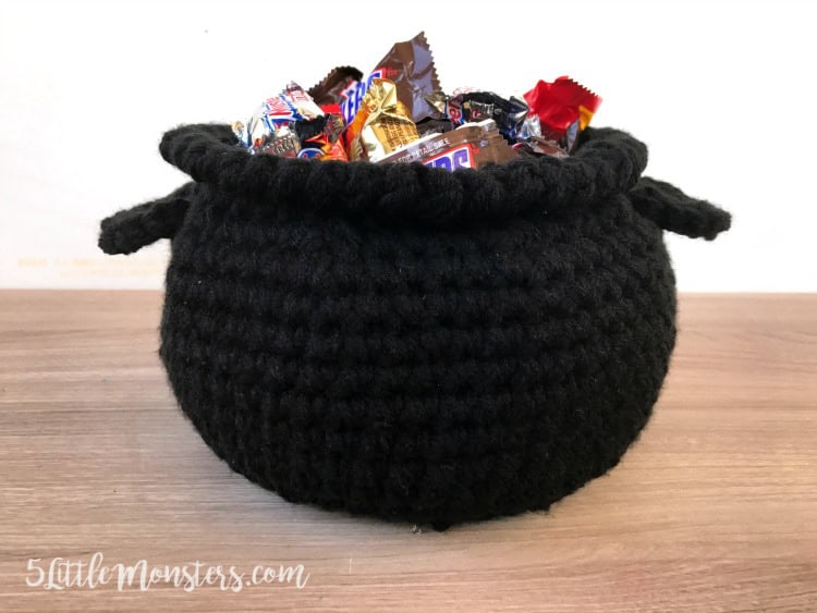 Mini cauldron-shaped basket perfect for candy or small treats.