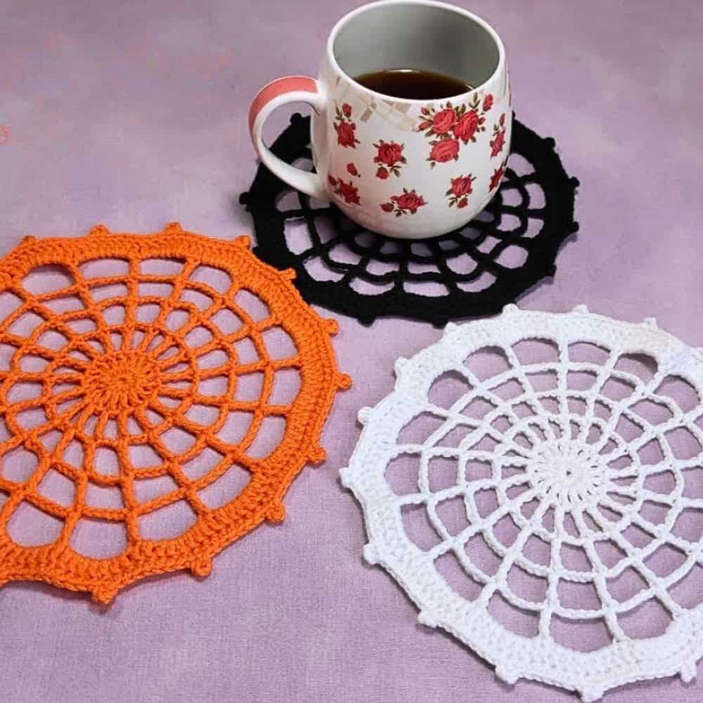 A lacy web doily that makes a hauntingly beautiful table centerpiece.