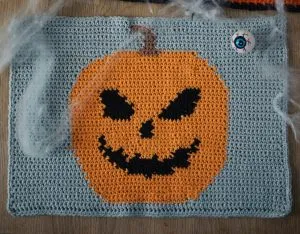 11. Pumpkin Face Throw Blanket – Yarnspirations