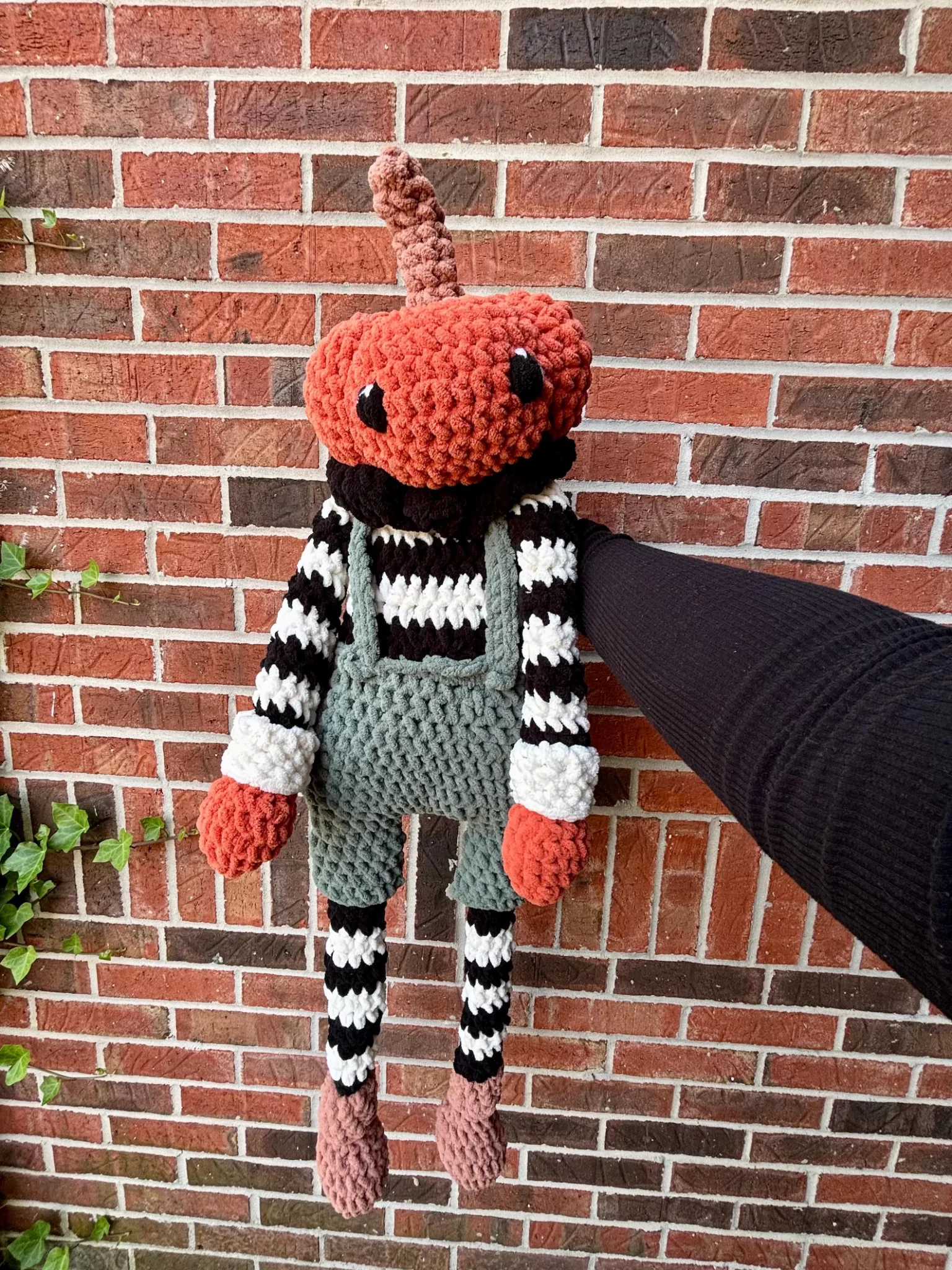 Adorable pumpkin-themed plush doll for décor or gifts.
