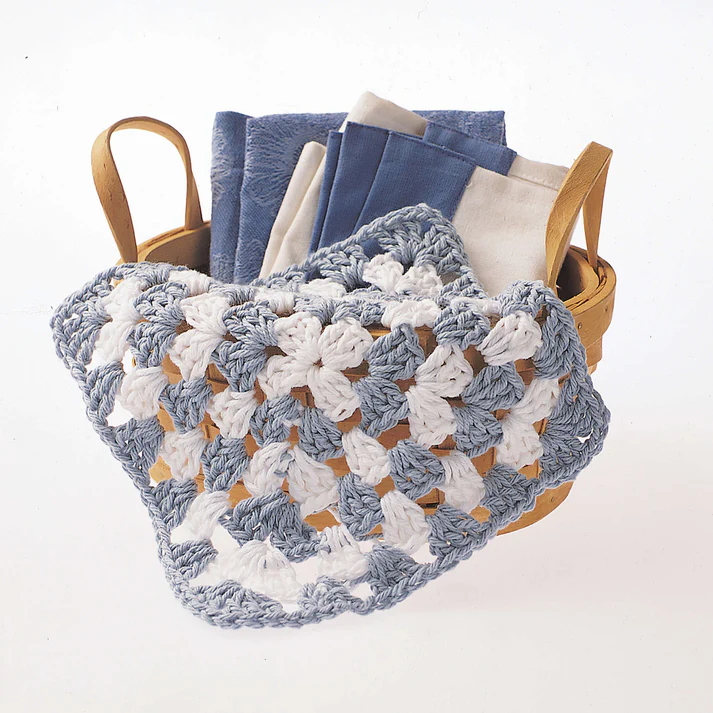 The classic Granny Square gets a fresh twist with this pattern by Yarnspirations. Perfect for using up yarn scraps, these squares are quick to whip up and look great in any kitchen. Plus, granny square projects are always in style on Pinterest!
