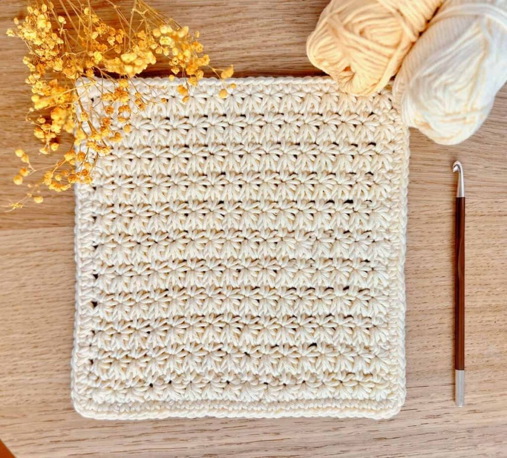 For a dishcloth that’s both elegant and eye-catching, look no further than the Star Stitch Dishcloth pattern by Ned & Mimi. The star stitch creates a unique and sophisticated texture that’s perfect for scrubbing but gentle enough for delicate surfaces
